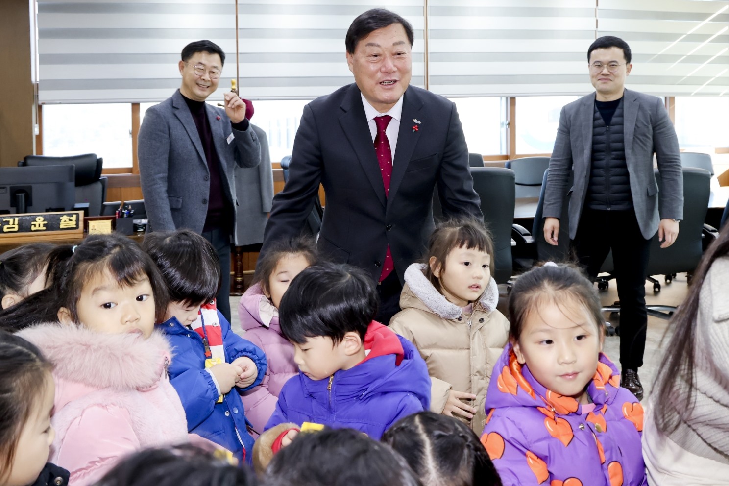 유치원을 대표하여 가장 어린 새싹반 친구들이 합천군청을 방문하여 전달하였습니다.