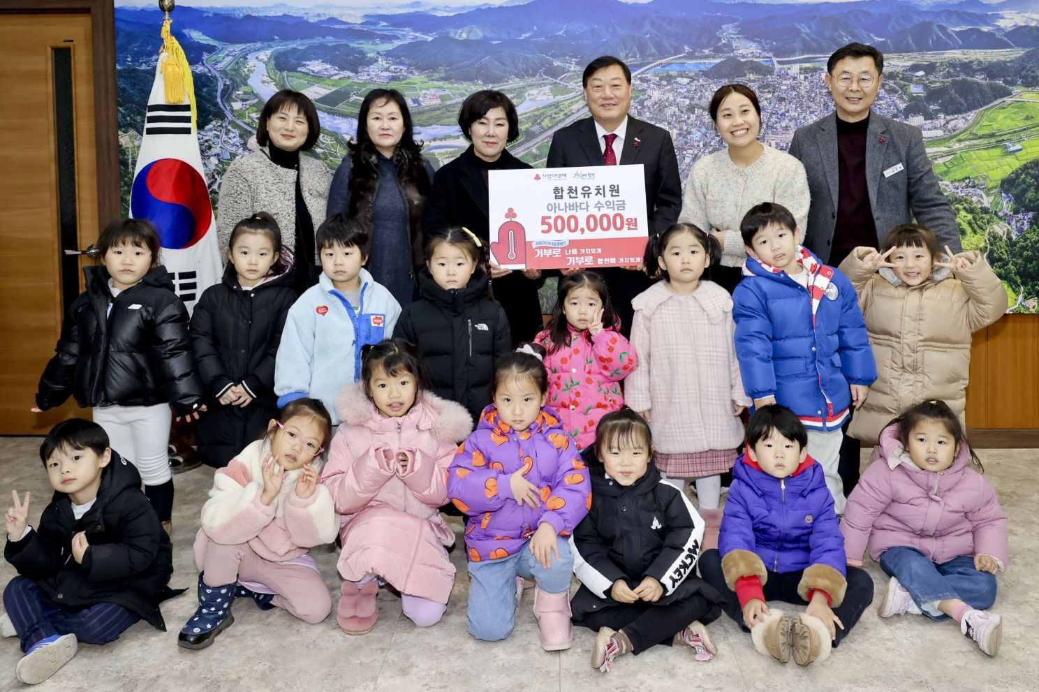 합천유치원 친구들과 전 교직원들이 힘을 모은 아나바다 데이의 수익금은 합천군청 '이웃돕기성금'으로 기부하였습니다.