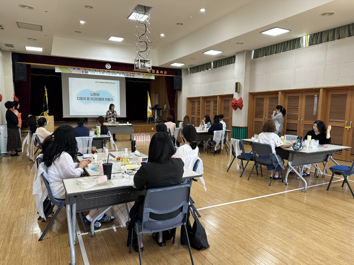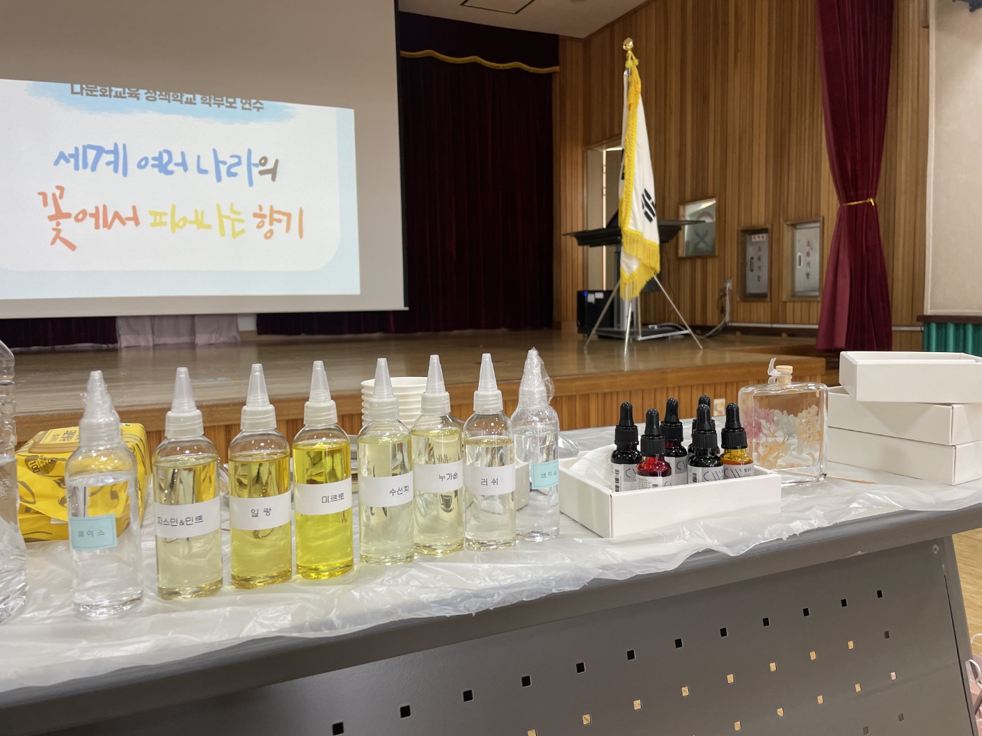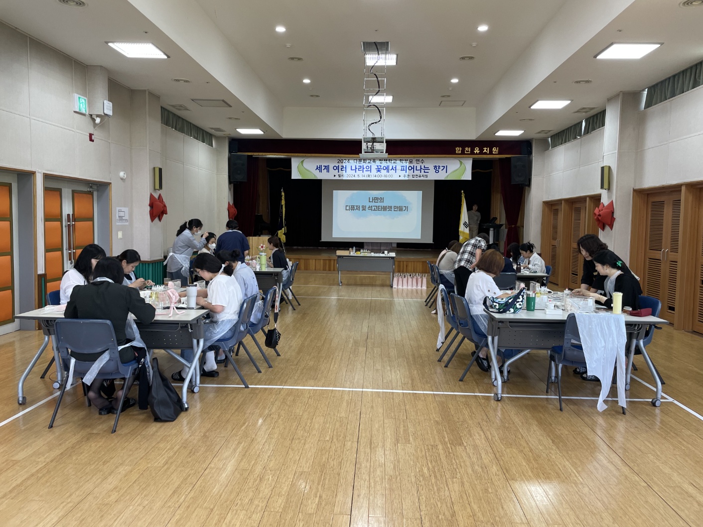 사업의 일환으로 ‘세계 여러 나라의 꽃에서 피어나는 향기’를 주제로 『디퓨저 & 석고 타블렛 만들기』 연수를 하였습니다.