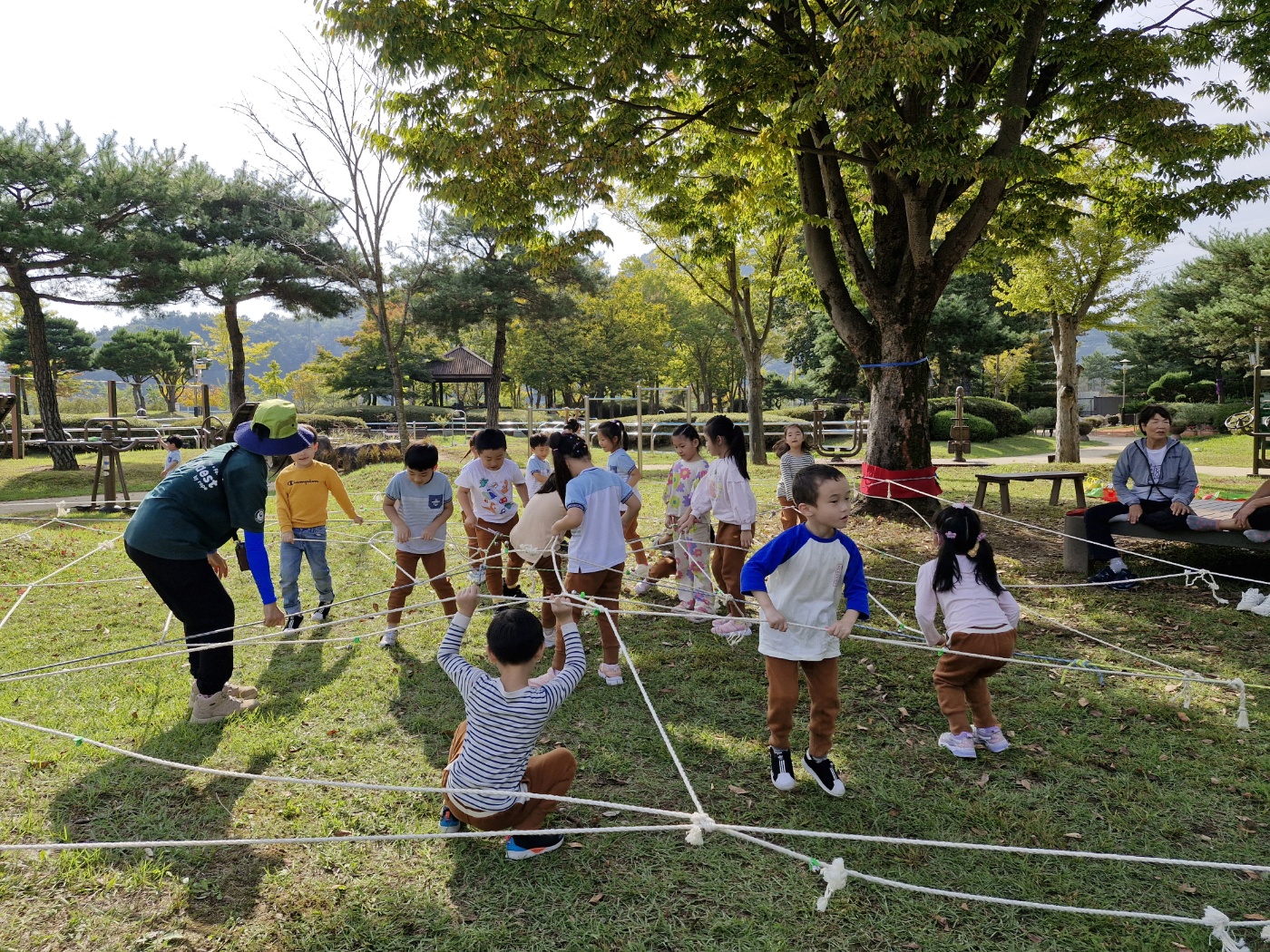밧줄로 재미있게 놀이하며 자연과 함께 신나는 하루를 보냈습니다.