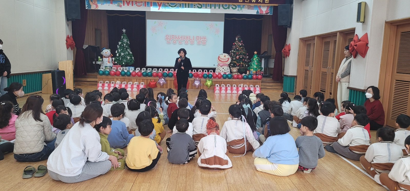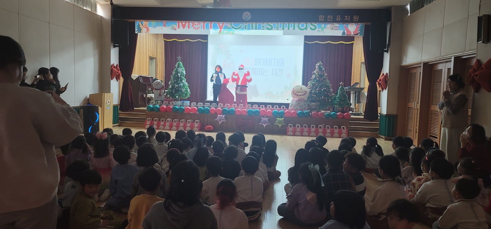 산타할아버지께서 아이들에게 선물을 전해주시고