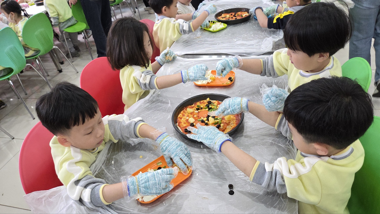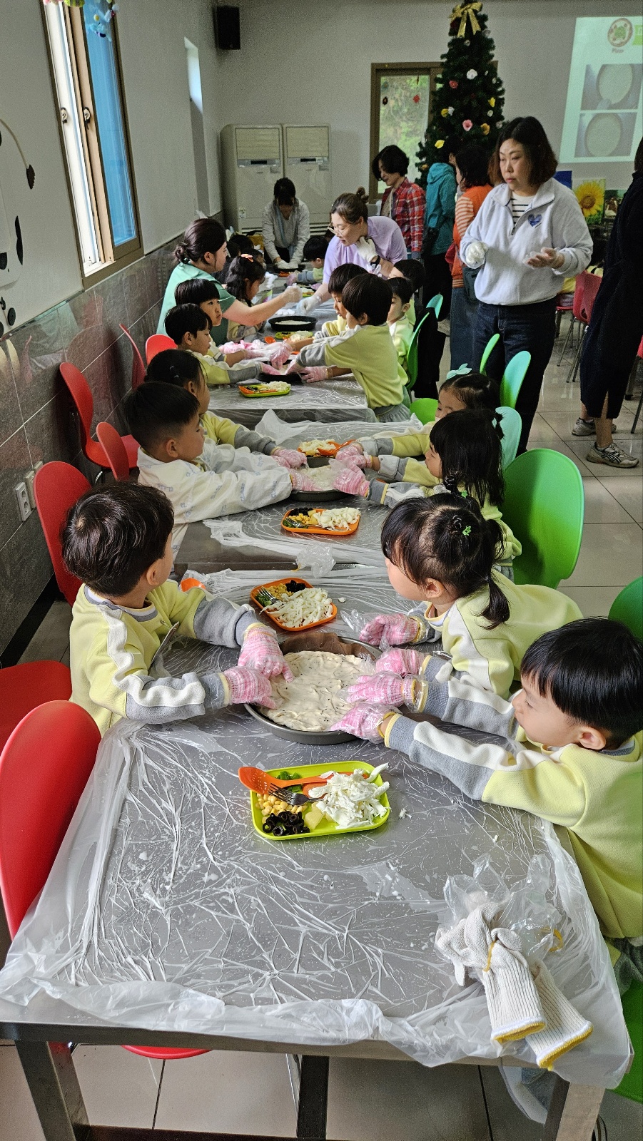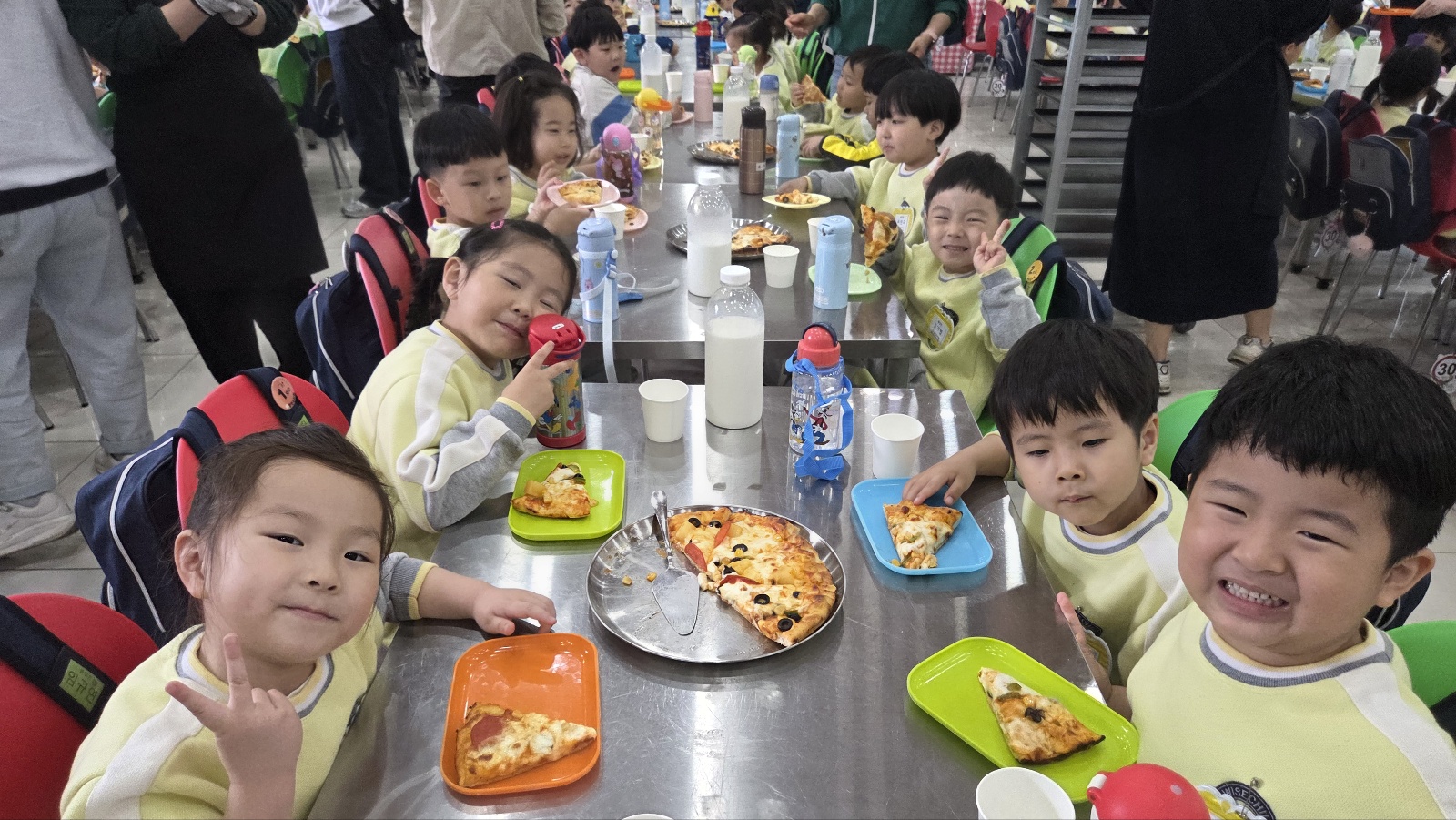 넓게 펼친 피자 도우 위에 소스와 야채를 넣고 직접 만든 치즈를 뿌려 완성된 피자는 우유와 함께 맛있게 나눠 먹었답니다. 역시 직접 만든 피자는 더 맛있는 것 같습니다.^^