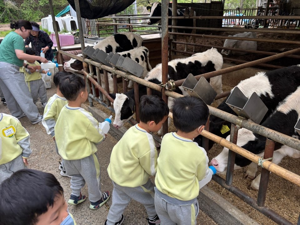 목장으로 이동해 어른 젖소에게 먹이도 주고 송아지에게 우유도 주며 젖소를 가까이에서 보고 관찰하며 동물들과 우리 생활의 관계를 이해하고 동물을 사랑하는 마음과 태도도 가질 수 있는 뜻 깊은 시간이 되었습니다.