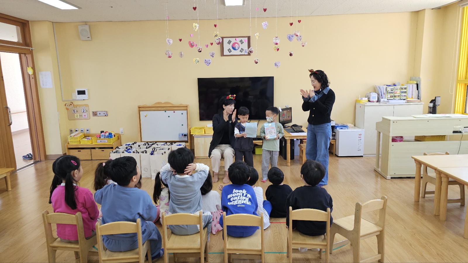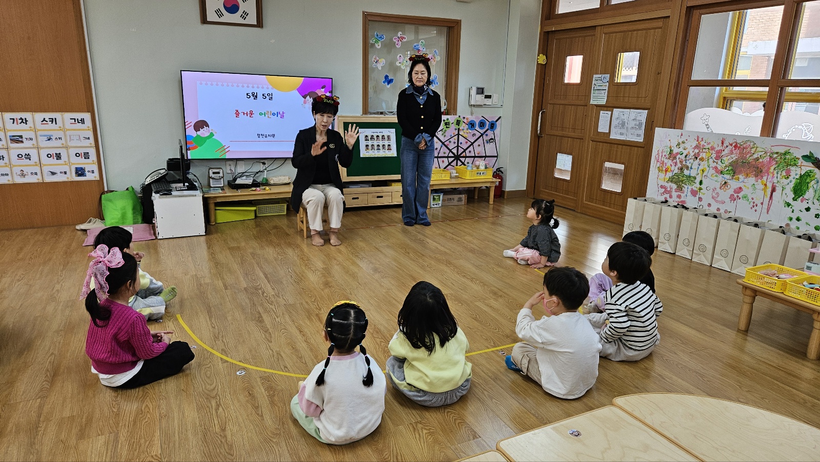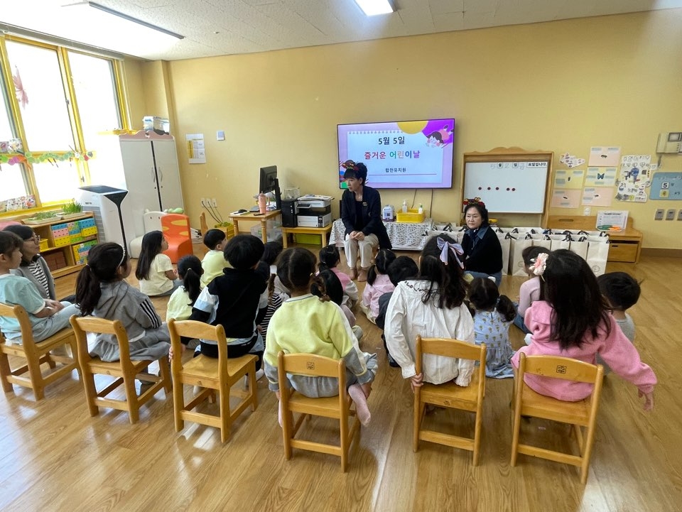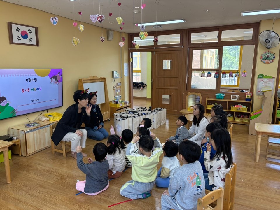 5월 유아 한마음 다모임은 각 반 교실에서 진행되었습니다. 각 반에서 진행된 어린이날 계기교육을 통해 어린이날을 만드신 방정환선생님과 어린이의 5가지 권리를 알아보며 ‘어린이날의 의미’에 대해 생각해보는 시간을 가졌습니다. 또한 원장선생님, 원감선생님께서 합천유치원 친구들에게 직접 어린이날 선물과 생일선물을 전해주시며 기쁨과 행복을 함께 나누는 의미 있는 시간이 되었습니다.
