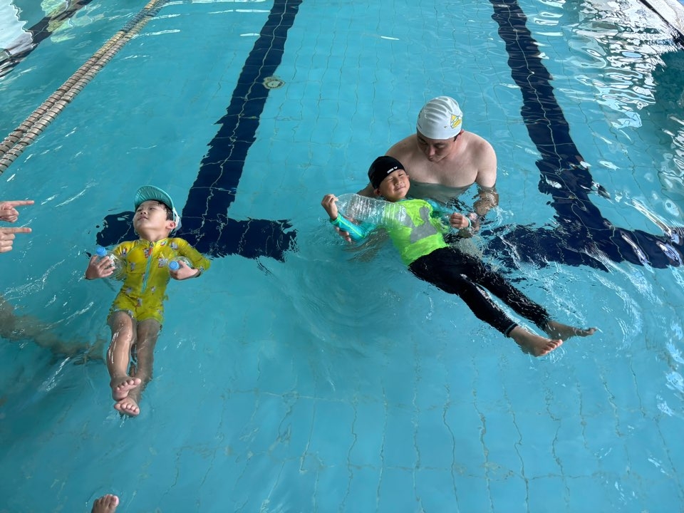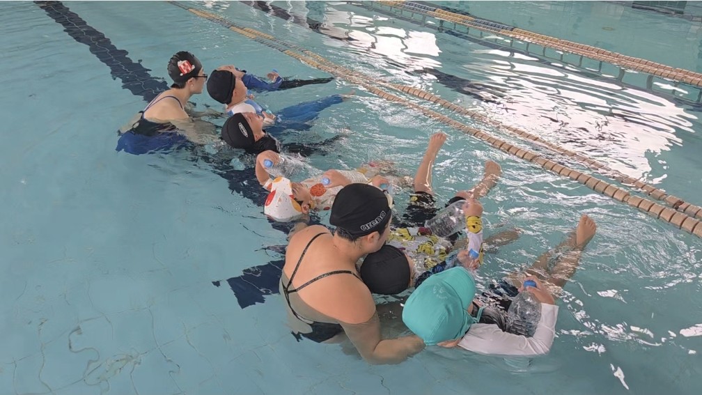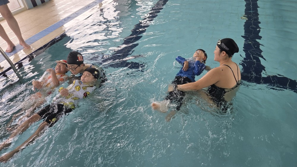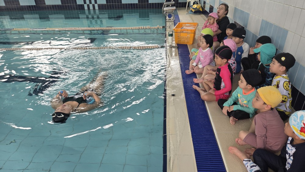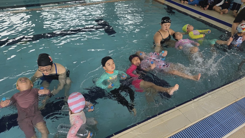 진주 키든 드림센터 어린이전문수영장에서 잎새반, 풀잎반을 대상으로 ‘생존수영을교육’을 실시하였습니다.