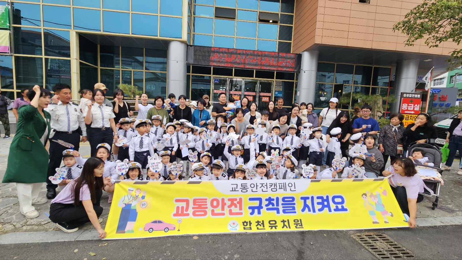 ‘일일경찰관’으로서 선서를 하며 교통안전의 중요성을 배우고, 직접 만든 부채형 피켓을 들고 구호를 외치며 합천 시내를 함께 돌며 캠페인 활동을 펼쳤습니다.